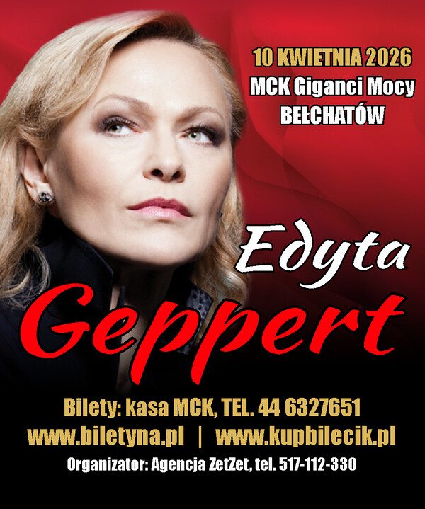 Miejskie Centrum Kultury w Bełchatowie zaprasza na koncert Edyty Geppert, który odbędzie się 10 kwietnia 2026 r. o godzinie 19:00 w sali teatralno – widowiskowej MCK Giganty Mocy.