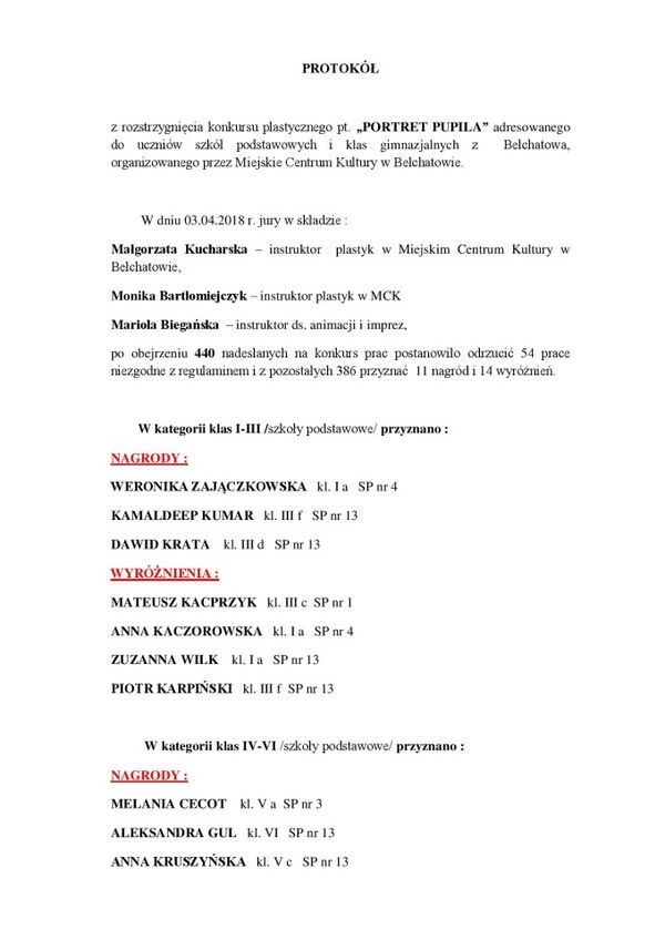 Konkurs plastyczny, pt. "Portret Pupila" został