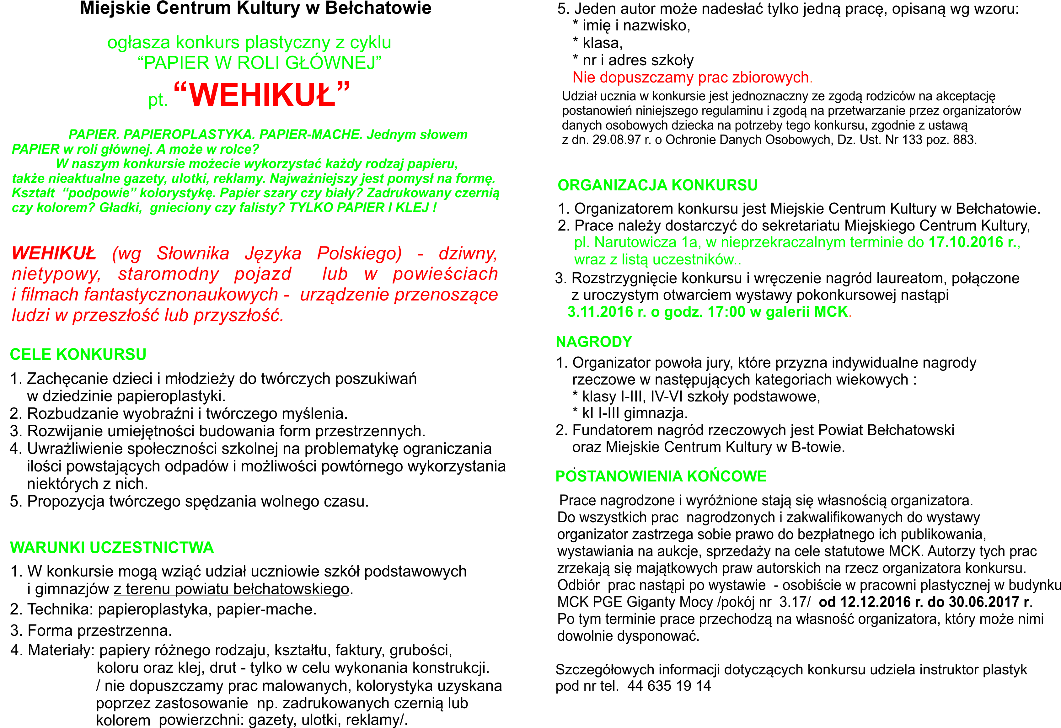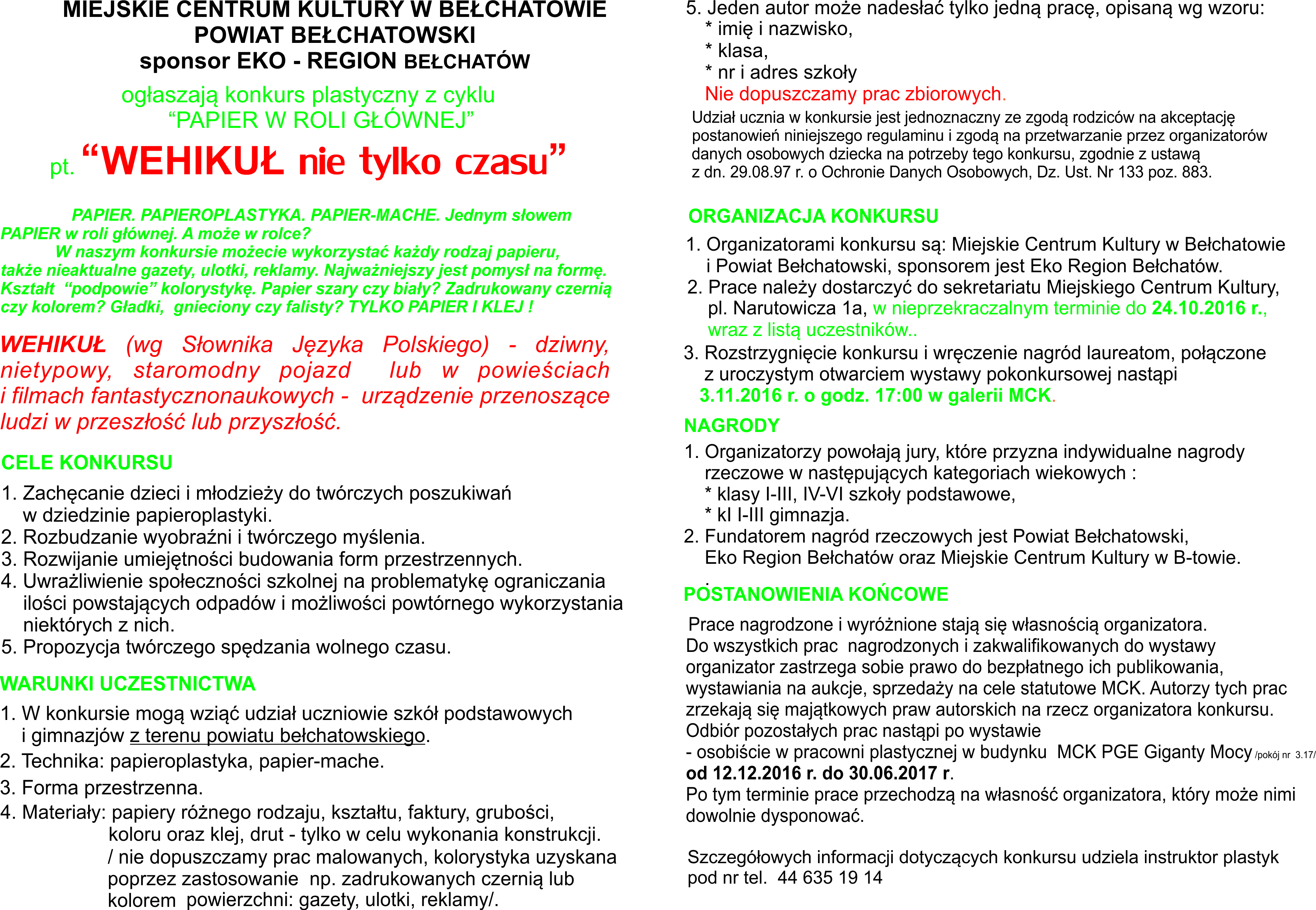 więcejZapraszamy do udziału w konkursie plastycznym z cyklu "Papier w roli głównej". Tematem konkursu będzie "Wehikuł nie tylko czasu".