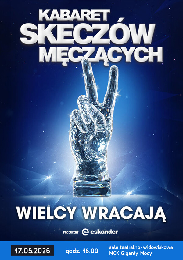 Miejskie Centrum Kultury w Bełchatowie zaprasza na występ Kabaretu Skeczów Męczących pt. „Jeszcze nigdy nie było tak dobrze”, który odbędzie się 19 maja 2026 r. o godzinie 16:00 w sali teatralno – widowiskowej MCK Giganty Mocy.