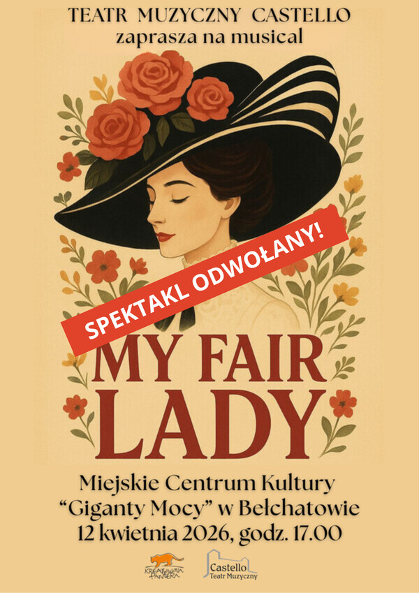 Miejskie Centrum Kultury w Bełchatowie zaprasza na spektakl pt. „My Fair Lady” w wykonaniu Teatru Muzycznego Castello, który odbędzie się 12 kwietnia 2026 r. o godzinie 17:00 w sali teatralno – widowiskowej MCK Giganty Mocy.
