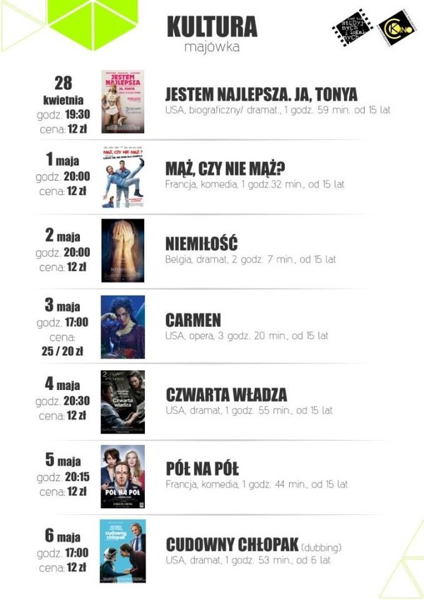 Miejskie Centrum Kultury zaprasza na majówkowe seanse w Kinie KULTURA, które odbywać się będą pomiędzy 28 kwietnia a 6 maja.