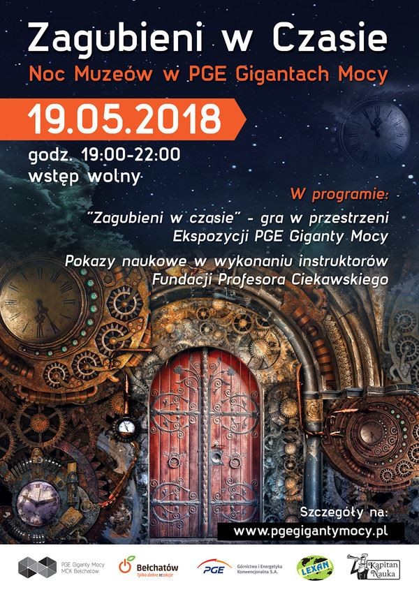 Zapraszamy na tegoroczną Noc Muzeów, która odbędzie się 19 maja! W godzinach 19:00 – 22:00 będzie można zwiedzić ekspozycję PGE Giganty Mocy, wziąć udział w interaktywnej grze oraz obejrzeć pokazy naukowe.