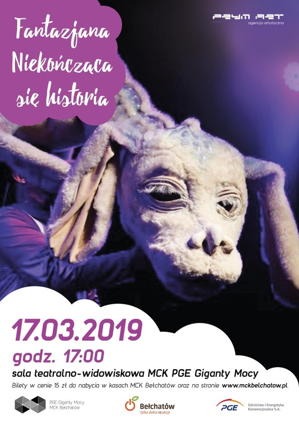 Miejskie Centrum Kultury w Bełchatowie zaprasza na spektakl dla dzieci, pt. „Fantazjana – niekończąca się historia”, który odbędzie się 17 marca o godzinie 17:00, w sali teatralno – widowiskowej MCK PGE Giganty Mocy.