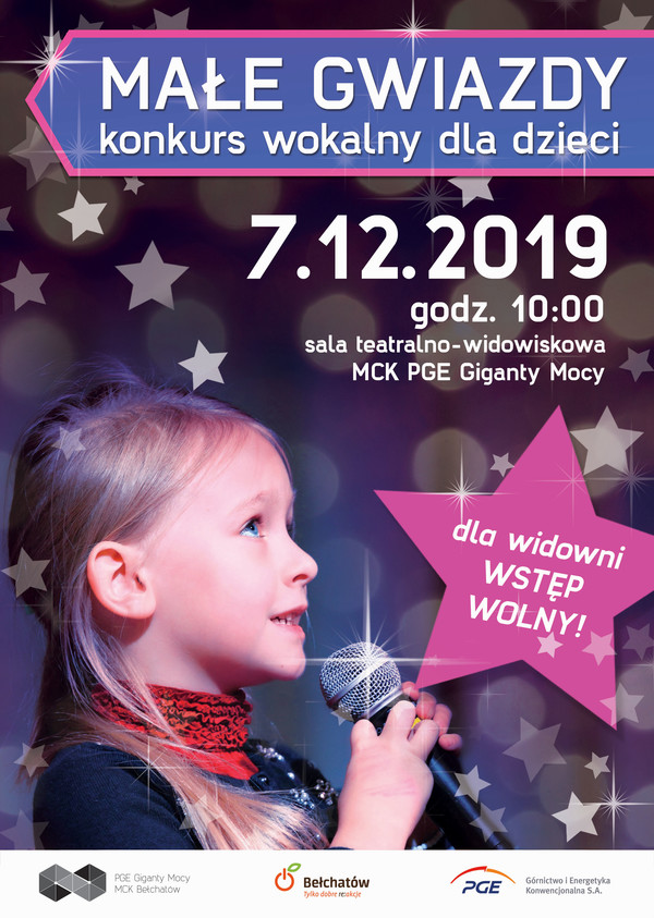 Miejskie Centrum Kultury w Bełchatowie zaprasza do udziału w 13. edycji konkursu wokalnego, pt. „Małe Gwiazdy”, który skierowany jest do dzieci w wieku przedszkolnym oraz uczniów szkół podstawowych - klasy 1-3.