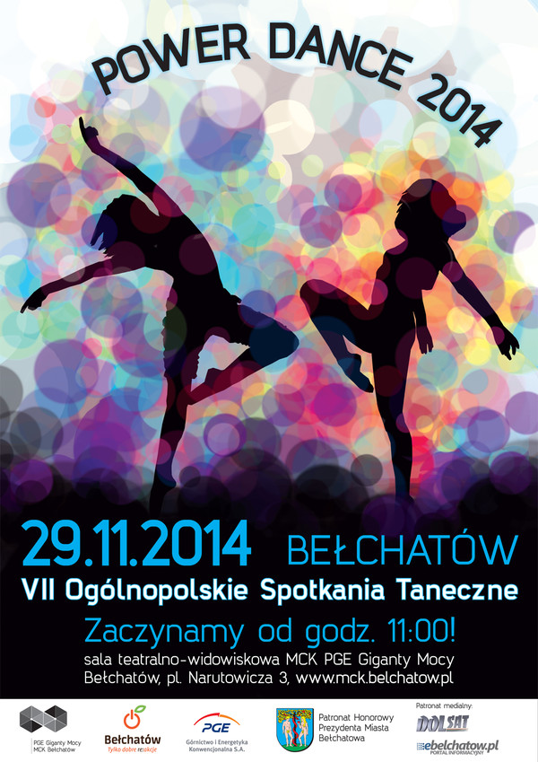Już 29.11.2014 r. odbędą się VII Ogólnopolskie Spotkania Taneczne Power Dance w Bełchatowie. Zaczynamy od godziny 11:00 na sali teatralno-widowiskowej MCK PGE Giganty Mocy.