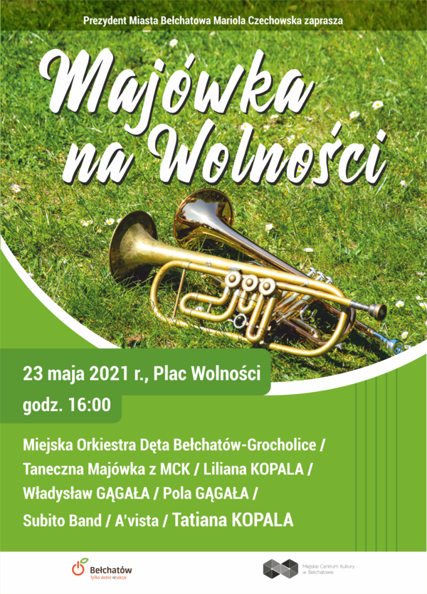 Prezydent Miasta Bełchatowa Mariola Czechowska zaprasza na Majówkę na Wolności, która odbędzie się 23 maja 2021 br. o godzinie 16:00 na Placu Wolności.
