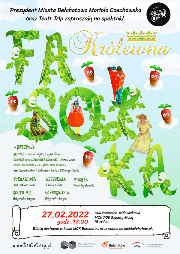 Prezydent Miasta Bełchatowa Mariola Czechowska zaprasza na spektakl dla dzieci pn. „Królewna Fasolka”, który odbędzie się 27 lutego br. o godzinie 17:00 w sali teatralno-widowiskowej MCK PGE Giganty Mocy.