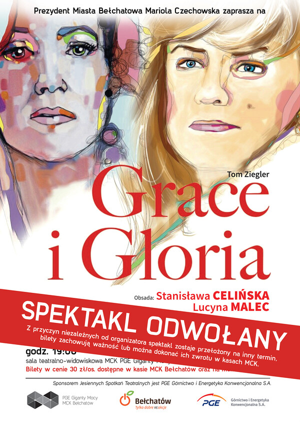 Spektakl pt. „Grace i Gloria”, który miał odbyć się w najbliższy piątek, z przyczyn niezależnych od organizatora zostanie przełożony na inny termin. Bilety zachowują ważność lub można dokonać ich zwrotu w kasach MCK.