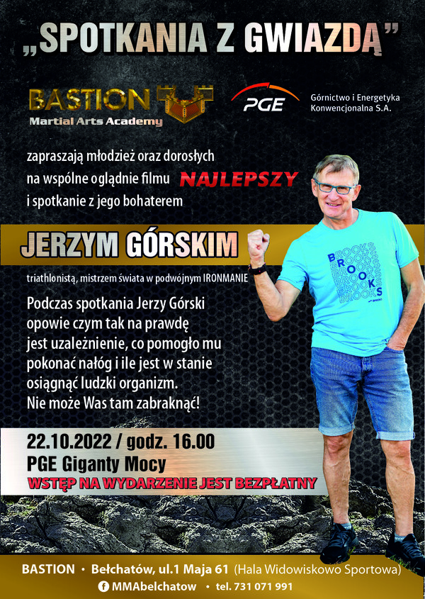 W nadchodzącą sobotę 22 października o godzinie 16:00 w sali teatralno – widowiskowej MCK PGE Giganty Mocy, odbędzie się spotkanie ze sportowcem oraz bohaterem filmu „Najlepszy” Jerzym Górskim.