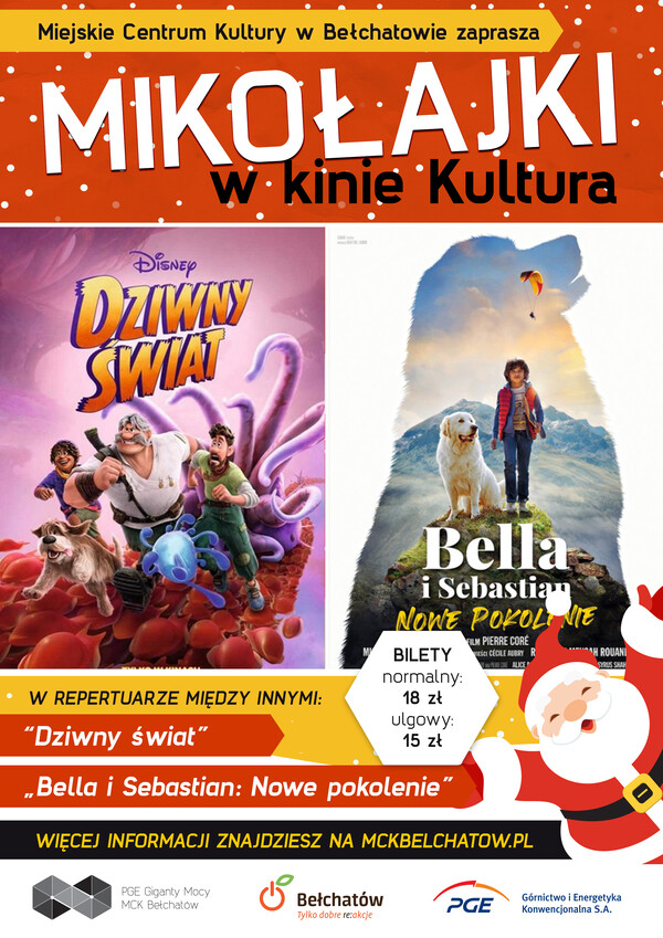 Miejskie Centrum Kultury w Bełchatowie zaprasza na mikołajkowe seanse w kinie Kultura. Od 3 do 8 grudnia przygotowaliśmy dla Was dwie specjalne propozycje.