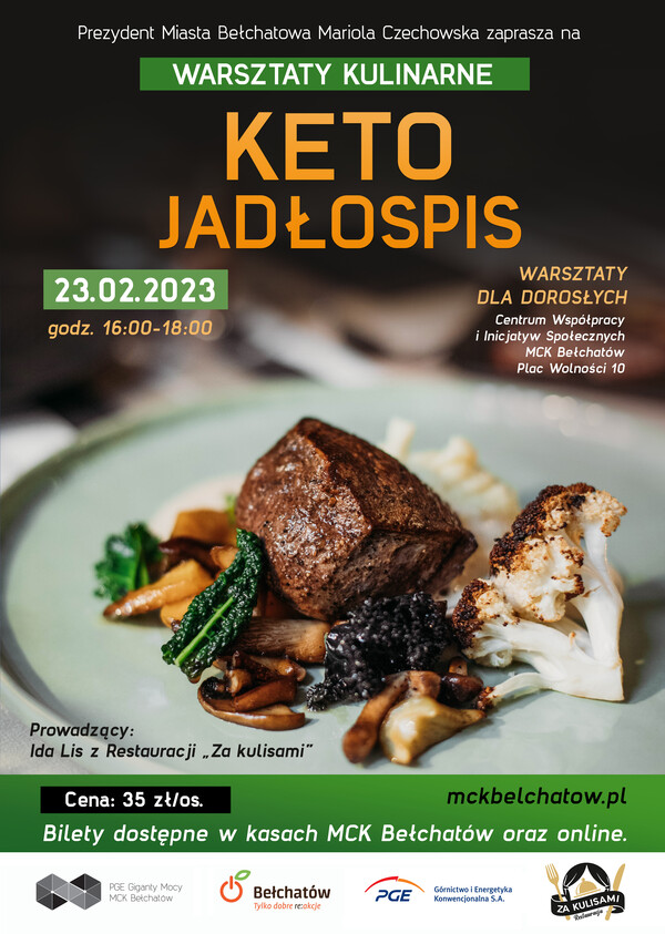 Prezydent Miasta Bełchatowa Mariola Czechowska zaprasza na warsztaty kulinarne „Keto jadłospis”, które odbędą się 23 lutego o godzinie 16:00 w Centrum Współpracy i Inicjatyw Społecznych MCK Bełchatów przy Placu Wolności 10.