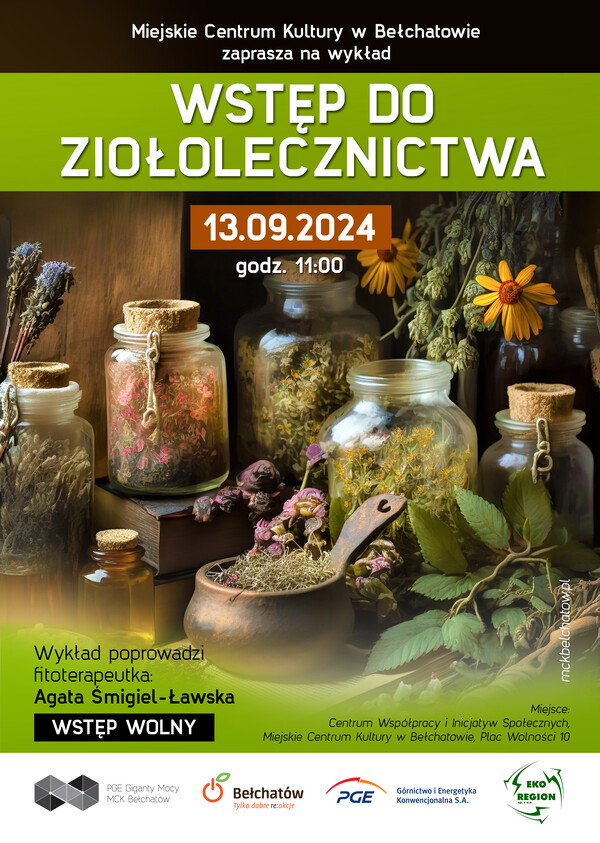 Miejskie Centrum Kultury zaprasza na wykład pn. „Wstęp do ziołolecznictwa”, który odbędzie się 13 września br. o godzinie 11:00 w Centrum Współpracy i Inicjatyw Społecznych Plac Wolności 10.