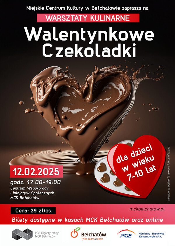 Miejskie Centrum Kultury w Bełchatowie zaprasza na warsztaty kulinarne dla dzieci „Walentynkowe Czekoladki”, które odbędą się 12 lutego br. o godzinie 17:00 w Centrum Współpracy i Inicjatyw Społecznych MCK Bełchatów Plac Wolności 10.