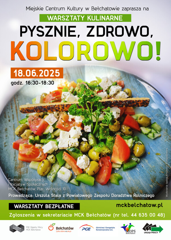 Miejskie Centrum Kultury w Bełchatowie zaprasza na warsztaty kulinarne „Pysznie, zdrowo, kolorowo!”, które odbędą się 18 czerwca o godzinie 16:30 w CWiIS Plac Wolności 10.