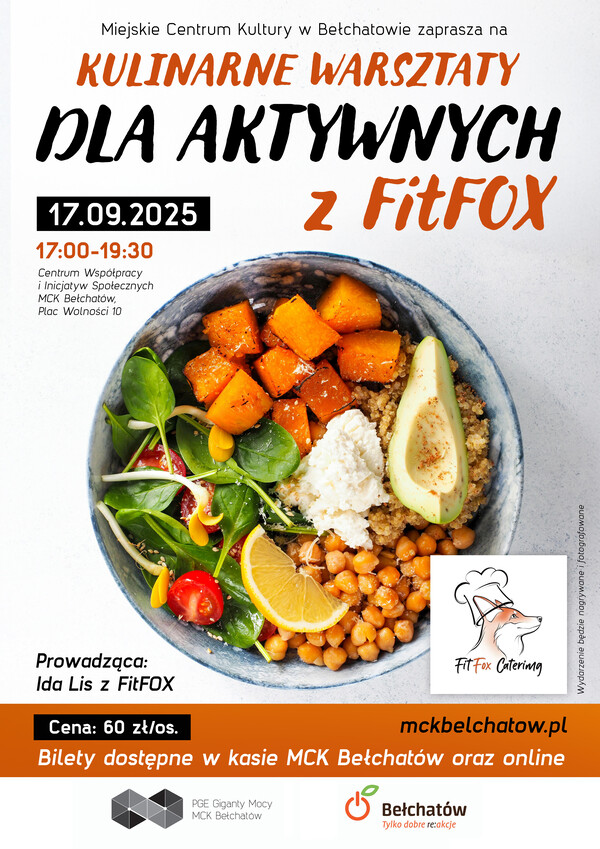 Miejskie Centrum Kultury w Bełchatowie zaprasza na warsztaty kulinarne dla aktywnych z FitFOX, które poprowadzi Ida Lis – trenerka i pasjonatka zdrowego stylu życia. Spotkanie odbędzie się 17 września br. o godzinie 17:00 w CWiIS Plac Wolności 10.