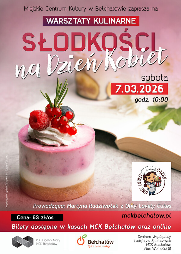 Miejskie Centrum Kultury w Bełchatowie zaprasza na warsztaty kulinarne „Słodkości na Dzień Kobiet”, które odbędą się 7 marca br. o godzinie 10:00 w CWiIS Plac Wolności 10.