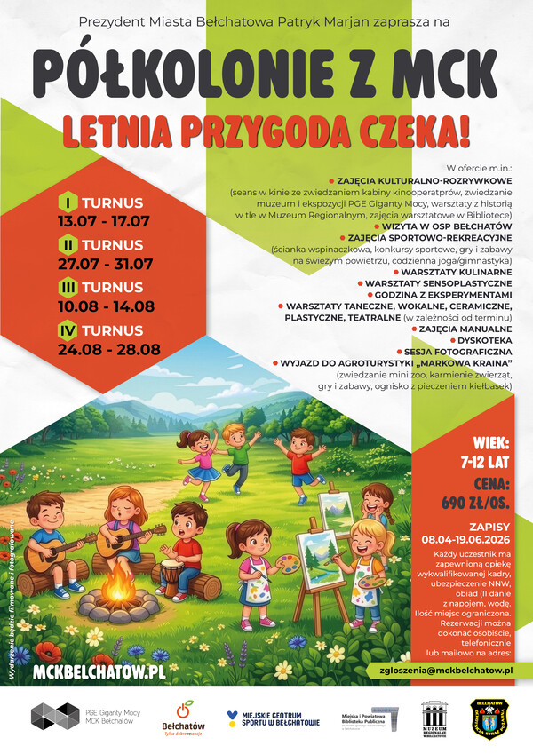 Zapisy prowadzone będą w terminie od 8 kwietnia do 19 czerwca 2026 roku. Rezerwacji można dokonać osobiście, telefonicznie lub mailowo pod adresem: zgloszenia@mckbelchatow.pl.