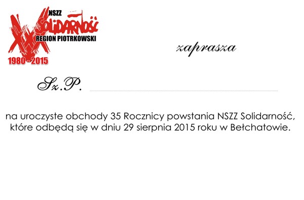 W tym roku wypada 35 rocznica powstania NSZZ Solidarność. Z tej okazji, region piotrkowski Związku zaprasza na obchody rocznicowe.