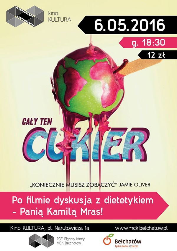 Po filmie, około godz. 20:00 dyskusja z dietetykiem, p. Kamilą Mras.