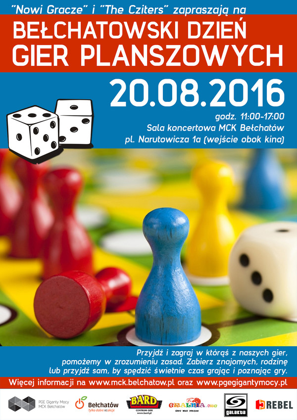 Bełchatowski Dzień Gier Planszowych to wydarzenie, współorganizowane przez PGE Giganty Mocy, podczas którego podzielimy się z Wami pasją do gier planszowych i nie tylko! Zapraszamy do udziału w imprezie, która odbędzie się 20 sierpnia br. w godz. 11.00-17.00 w sali koncertowej Miejskiego Centrum Kultury. Impreza stanowić będzie wprowadzenie do tematyki gier planszowych oraz zaplanowanych na październik "GIGApasji - Megarozgrywka", których tematem będą właśnie planszówki, karcianki, a także wiele innych emocjonujących gier.