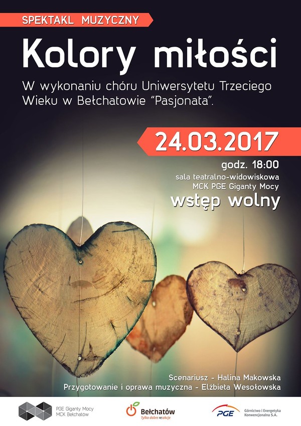 24 marca zapraszamy na wyjątkowy spektakl muzyczny pt. „Kolory miłości” w wykonaniu chóru Uniwersytetu Trzeciego Wieku w Bełchatowie "Pasjonata".