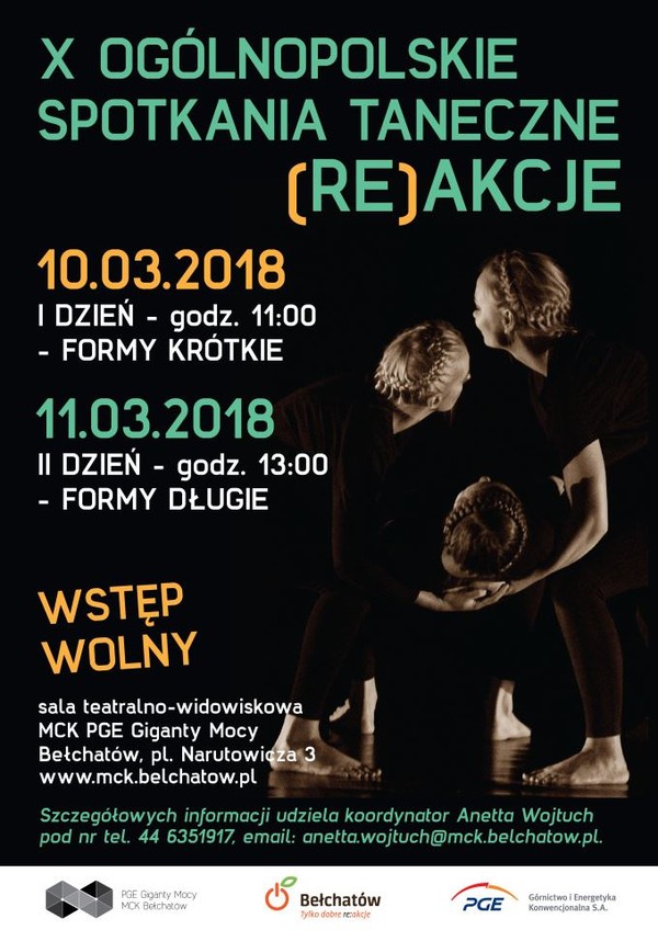 Miejskie Centrum Kultury w Bełchatowie zaprasza na taneczne wydarzenie roku - X Ogólnopolskie Spotkania Taneczne (Re)akcje Bełchatów 2018, które odbędą się w dniach 10 – 11 marca, w sali teatralno - widowiskowej MCK PGE Giganty Mocy. Jubileuszowe edycja konkursu potrwa w tym roku aż dwa dni!